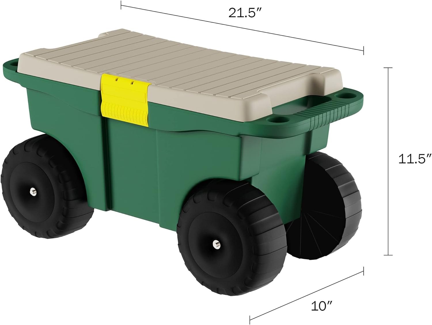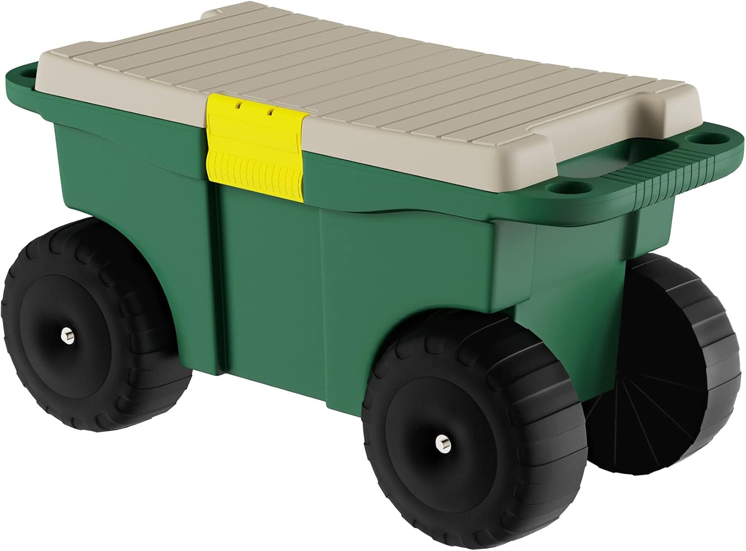 Keep all your gardening tools right where you need them with the Garden Cart with Seat and Wheels by Pure Garden. The spacious interior and removable tool tray are ideal for keeping all your garden supplies in one convenient place. The lid is a sturdy bench seat that alleviates the need for bending or stooping, making low to the ground tasks much easier. The built-in handles make it easy to transport plants, flowers, mulch, tools and more. With four 6-inch-diameter plastic wheels that can navigate through tall grass, over rocks, and around the yard, this garden scooter is ideal for both kids and adults with green thumbs.